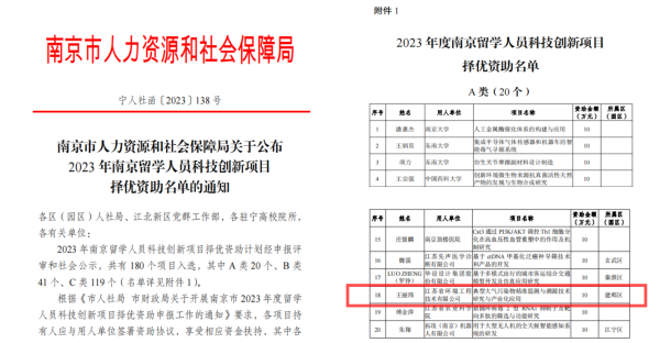 喜報(bào)丨省環(huán)境工程技術(shù)有限公司員工獲南京留學(xué)人員科技創(chuàng)新項(xiàng)目擇優(yōu)資助