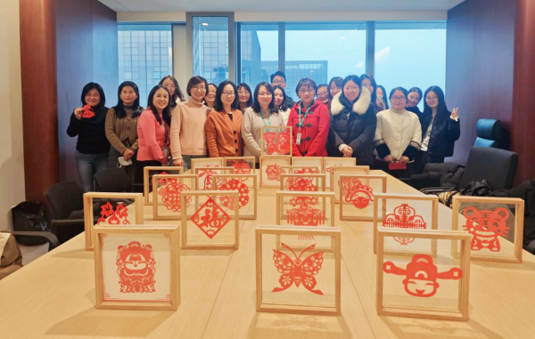 其次,通過剪紙活動,大家相互學習、交流探討剪紙技巧,進一步培養(yǎng)團隊合作能力,提高集體凝聚力。剪紙作品完成后大家交換窗花,以窗花為寄托,互相送出在生活、工作、學習等方面的美好祝福。