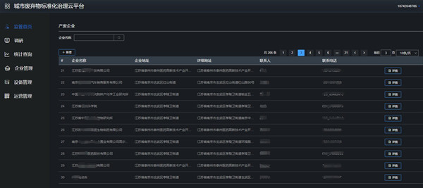2、對接危廢智能倉儲設備,實現(xiàn)數(shù)據(jù)實時傳輸和上傳,建立產(chǎn)廢企業(yè)“一企一檔”,包括危廢檢測指標上傳、合同管理、管理計劃維護等功能。