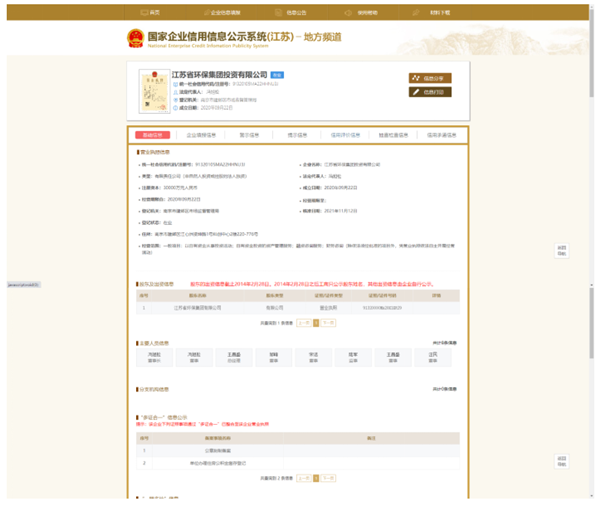發(fā)布日期:2022-04-26 12:59 來源:江蘇省環(huán)保集團(tuán)投資有限公司 字體:[ 大 中 小 ] 一、工商注冊(cè)登記等企業(yè)基本信息
